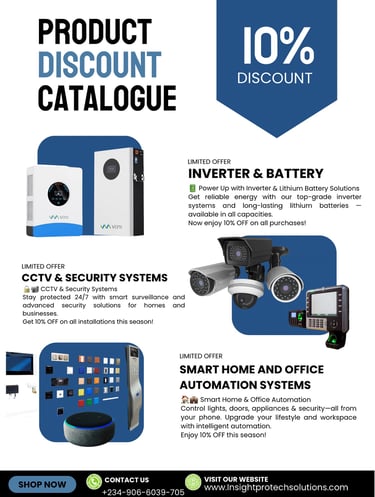 Discounts on renewable energy, smart home and office automation and cctv and security systems package, come to insight Protech solutions Ltd for top notch services in Nigeria. #renewable energy Nigeria